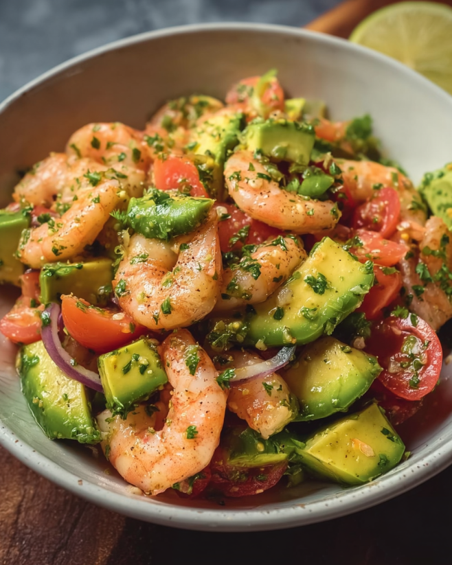 My favorite combo: shrimp, romaine, avocado, cucumber, and a simple lime dressing. If you want a slightly sweet twist, mango works here too.