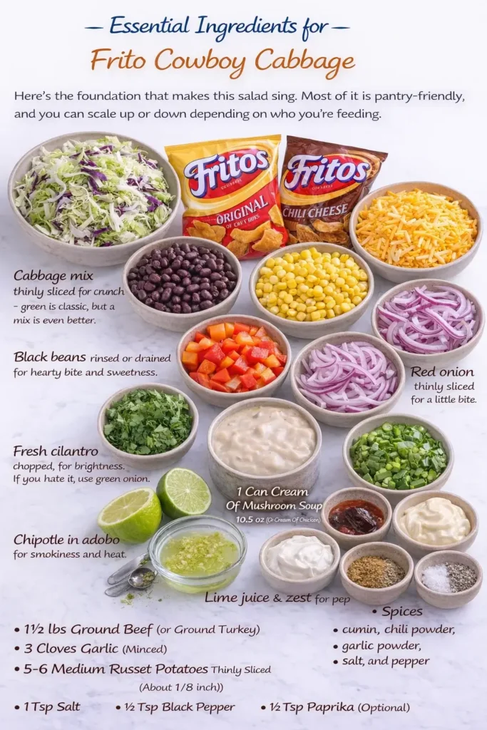 Now you’ve got everything you need to make a big, happy bowl of cowboy cabbage that tastes like sunshine and good company. Keep the chips crisp, lean into that lime, and let the smoky dressing do the heavy lifting. If you want another take on this idea, check out the helpful guide at Frito Cowboy Cabbage – I Am Homesteader for inspiration and variations. I hope this becomes your new easy favorite – whip it up, share it with friends, and enjoy every crunchy bite.