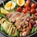 A hearty and colorful salad featuring grilled chicken, crispy bacon, and creamy avocado. Perfect for a satisfying meal that’s light and easy to prepare.