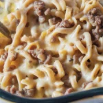 Wide egg noodles are my first choice for this bake. They’re sturdy, soak up sauce, and stay tender without turning heavy. The wavy edges catch the beef and cheesy bits in the best way.