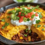 Let the filling simmer until it slightly thickens before adding the topping. You want a scoopable sauce, not soup. If you notice excess grease from beef, drain it off to keep flavors clean. And rest the casserole after baking. Ten minutes is the difference between a runny slice and a confident wedge.